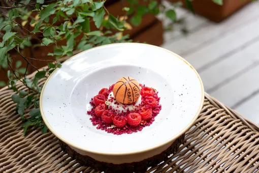 Меню отражает образ жизни и вкусовые предпочтения Катерины и ее сына — буратту из собственной сыроварни дополняют манго и авокадо, зеленый салат подают с инжиром — любимый фрукт Катерины, а гребешки подают с кукурузным кремом. Специально по заказу малыша Теодора была разработана пицца с ананасами, цукини и креветками на безлактозном молоке. Фотогеничная кокосовая панна-котта со свежей малиной отражает важную часть жизни Катерины – на десерт, как в кольцо, упал баскетбольный мяч.