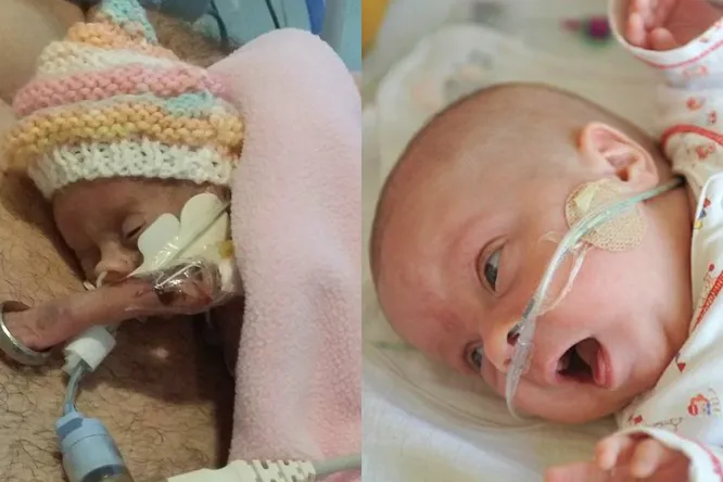 Во время беременности маме диагностировали плацентарную недостаточность и врачи сообщили, что ее ребенок проживет не больше трех недель. Однако недавно девочке исполнилось 17 недель и через пару недель родители смогут забрать ее домой, в Йоркшир.
