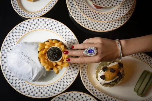 Меню от шефа Артема Здора — ироничная роскошь поздних ужинов: хрустящий батат с черной икрой, фирменный двойной чизбургер, теплая бриошь с тартаром или запеченный картофель с щучьей икрой — любимые блюда ночной смены. Эксклюзивная коктейльная карта, доступная только во время The Carlton NightShift: игристый и дерзкий «Царский» с абрикосом и мятой, пряная