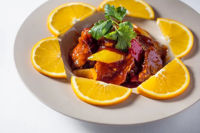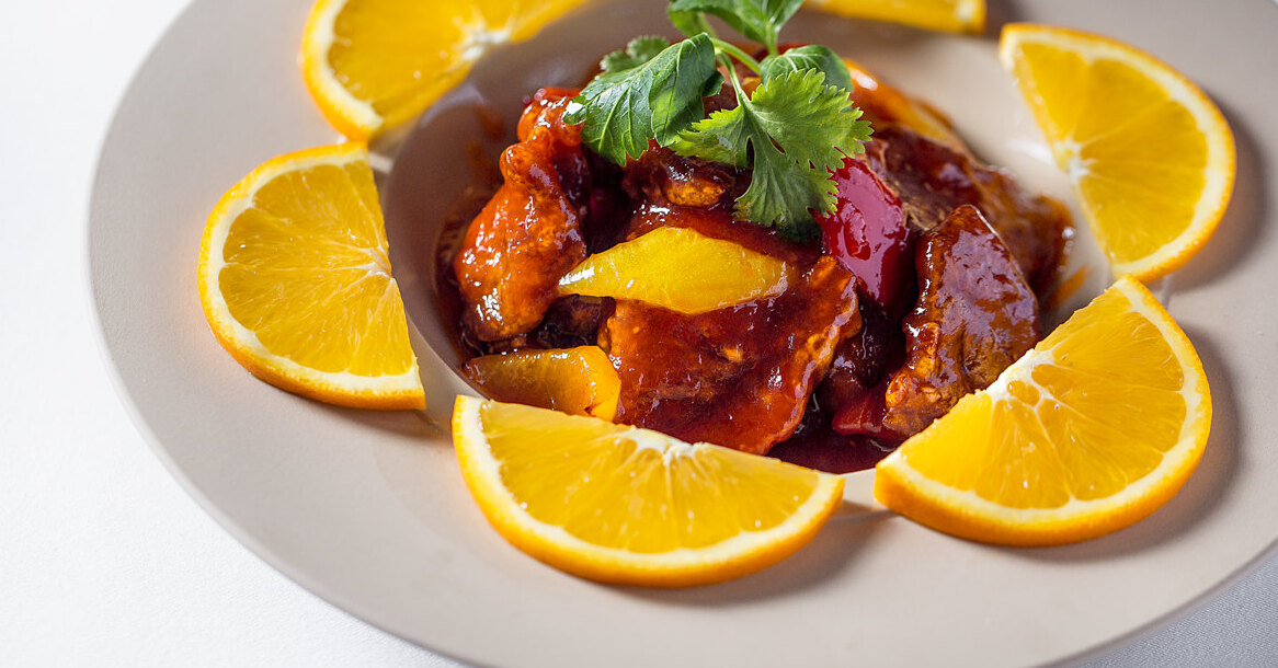 - Говядина в панировке в апельсиновом соусе – 1900 р