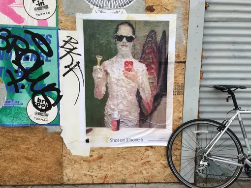Пабло Роша (Pablo Rochat) и Фабио Бенедетто (Fabio Benedetto) из Сан-Франциско развесили по городу постеры с фотографиями среднего качества, будто бы снятыми при помощи нового смартфона от Apple. Таким образом художники высмеяли нашумевшую кампанию «Снято на iPhone 6», в рамках которой корпорация развесила во многих странах мира билборды с красивыми пользовательскими снимками.