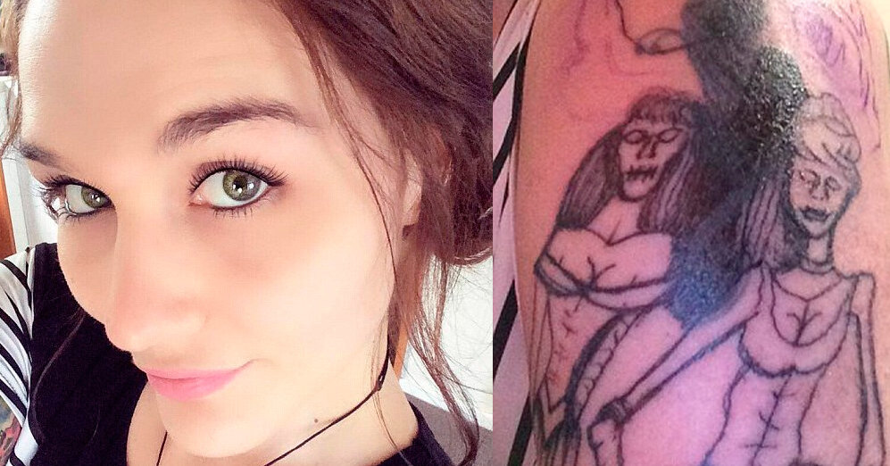 Сара опубликовала фотографию своей татуировки в Facebook (Социальная сеть признана экстремистской и запрещена на территории Российской Федерации). Планировалось, что на руке девушки будут красоваться две сказочные героини, но вместе них мастер набил монстров! У принцесс нет глазных яблок, их рты зашиты, а одна из них вообще сжимает нож. Сара рассказала, что отдала за татуировку 400 долларов!