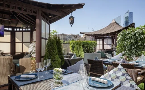 Атмосферный бар в Four Seasons Hotel Moscow (Москва, Охотный ряд 2) обзавелся собственной террасой с видом на Исторический музей — Красная площадь буквально в нескольких метрах. Шеф-повар Дженнаро Конте позаботился о меню, утонченно подчеркивающем самобытность русской кухни и традиционных летних продуктов. Нужно попробовать парфе с карельской морошкой и слабосоленой форелью, салат с камчатским крабом, лосось с сахалинским папоротником. И, конечно, холодные супы: карельский свекольник с говядиной и окрошку на айране. Также в числе новинок необычная коктейльная карта - она получила название Cocktail me Russia, интерпретирует культурные образы регионов России, а еще выглядит как походная библиотечка.