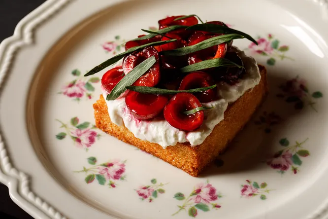 В карте салатов появились арбуз с фетой, мятой и миндалем, а также буррата с черешней и сладкими томатами под вишневым соусом. Окрошку готовят на квасе или тане, с традиционным набором ингредиентов. На десерт подают медовый тост со страчателлой, черешней и эстрагоном (на обложке дайджеста). Чтобы восполнить гидробаланс, заказывай персиковый зеленый чай и айс-матчу с кокосовой водой и бананом.
