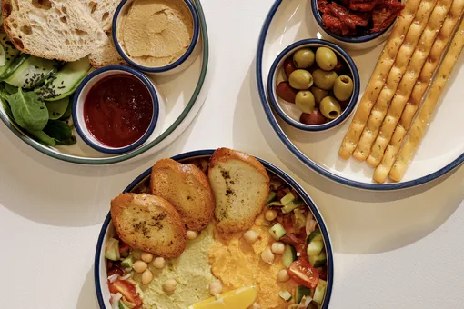 В Cream Soda (Москва, Лесная 5 + Мясницкая 15) на Лесной с 18:00 и до 22:00 действует скидка на аперитивы, так что шеф-повар укомплектовал меню подходящими закусками: хумусом с болгарским перцем, авокадо, овощным салатом и хрустящими гренками, тарелкой с тремя видами оливок, вялеными томатами в масле и итальянскими традиционными хлебными палочками со специями — гриссини, паштетом из цыпленка с малиновым джемом, шпинатом и слайсами свежего огурца.