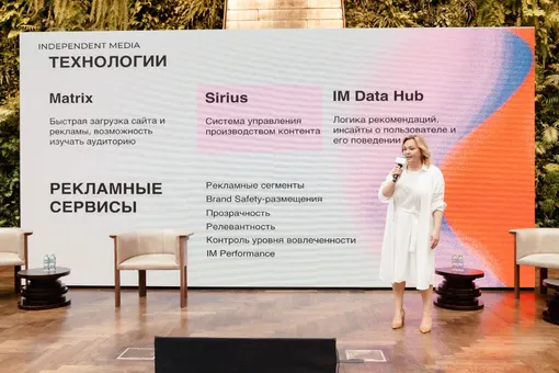 Открыла мероприятие Наталья Веснина. Она подчеркнула, что медиахолдинг стал одними из первых на рынке, кто решил локализовать бизнес и сохранить медийные активы – и уже сейчас можно сказать, что очень непростой этап ребрендинга и редиректа трафика компания прошла практически без потерь. Более того, благодаря инновационным техническим решениям Independent Media уже предлагает рекламодателям уникальные сервисы. До конца года медиахолдинг выпустит около 5 тыс. единиц видеоконтента, 300 тыс. единиц диджитал-контента и как минимум 26 печатных номеров.