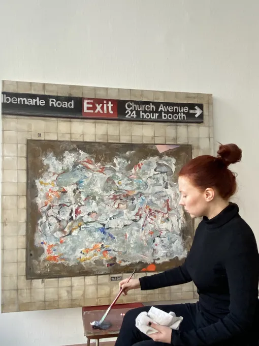 Создавая яркие, контрастные картины и вневременные монохромные произведения, художница Ольга Буренкова стремится к балансу между эмоциональным напряжением, вызванным бесконечными поисками, и спокойным созерцанием. Она не придерживается какого-то одного выбранного стиля, вместо этого активно экспериментирует с различными жанрами, техниками и материалами, получая новый чувственный и визуальный опыт. Творчество художницы отражает красоту неочевидных вещей, того, что скрыто от глаз большинства. Автор расставляет акценты и предлагает посмотреть на предмет под другим углом, демонстрируя свое видение. Для Art Russia Ольга Буренкова подготовила серию работ, посвященную стенам метро Нью-Йорка – города, где она прожила последние два года. «Я начала работать над серией работ с момента начала пандемии, а завершила уже в Москве. Находясь в вынужденной изоляции, мне не хватало поездок, ежедневной активности, а стены метро были напоминанием о той жизни, к которой так отчаянно хотелось вернуться», – говорит художница.