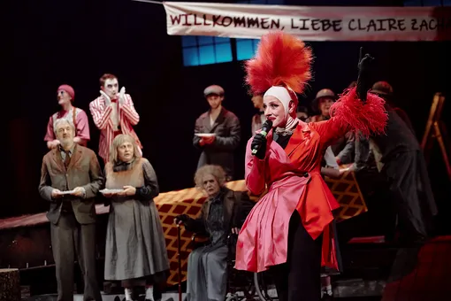 Яркая постановка Игоря Теплова по мотивам трагикомедии Фридриха Дюрренматта «Визит старой дамы» заставит зрителей испытать целый спектр эмоций: от любви до ненависти, от жажды мести и справедливости до готовности переступить нормы морали. Сам спектакль от фантасмагорической комедии довольно быстро уходит в настоящую трагедию, а нам остается только наблюдать за трансформацией каждого из героев. Чью сторону выбрать и кому сочувствовать — решать только вам.