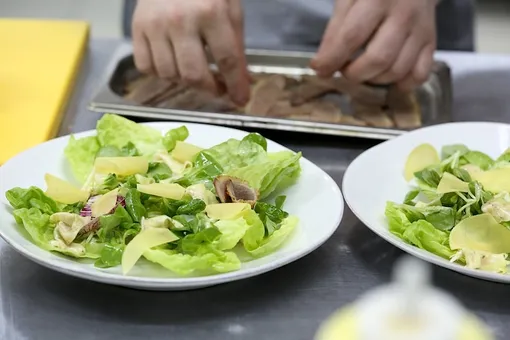 Альтернативой привычному «Цезарю» станет интересный салат с уткой и манго, который можно найти в меню ресторана Юлии Высоцкой Food Embassy. Шеф-повар Алексей Беликов поделился с нами рецептом и показал, как его приготовить.