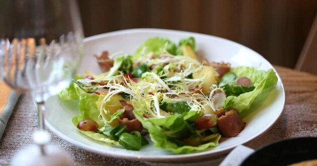 Добавь в салат теплые кусочки утки и подавай на стол!