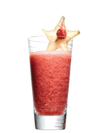 60 мл малиновой водки30 мл апельсинового ликера (лучше «Трипл сек»)30 мл сока лимона (лучше лайма)горсть малины (свежей или замороженной)Все смешай блендером с измельченным льдом. Укрась бокал ягодами малины или экзотическим фруктом. |