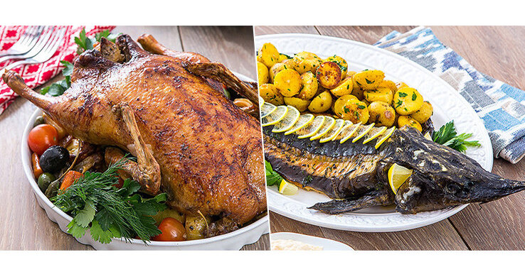 Шеф-повара сервиса составили меню с учетом разных вкусовых предпочтений и ситуаций: наборы продуктов подойдут как для большой компании, так и для романтического ужина. Сегодня мы раскроем секреты приготовления 2 новогодних блюд: «Осетр по-царски с беби-картофелем» и «Утка в пряностях».