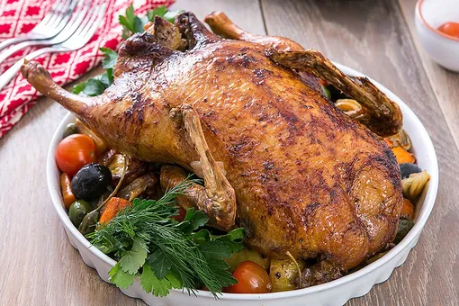 «Для того, чтобы определить готова ли утка, проткните её в самом толстом месте деревянной шпажкой — из прокола должен пойти прозрачный сок, а не красный.