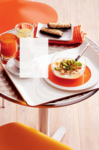 Мелко нарежь луковицу, 2 стебля черешкового сельдерея, половину красного перца и кабачка, потри на терке среднего размера морковь - и все обжарь в оливковом масле, посоли, поперчи и добавь петрушки. Залей овощи 1 л воды, когда она закипит, добавь 2 кубика овощного бульона и дай покипеть на маленьком огне 45 минут. Процеди бульон через дуршлаг. Подавая к столу, брось в тарелку горсть проросшей пшеницы.