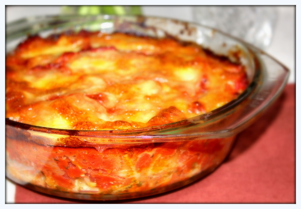 Блюдо сразу подавай на стол, пока моцарелла сверху не застынет.