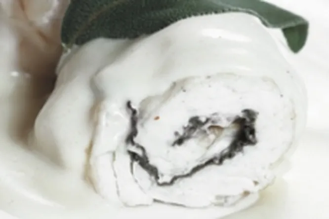 4. Выложить на тарелку, полить соусом «Бешамель», украсить шалфеем;