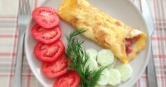 - Теперь укрась тарелку овощами и омлет по-французски готов.