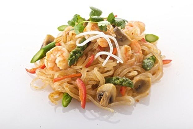 Неделя Японии: Теплый салат с креветками и стеклянной лапшой