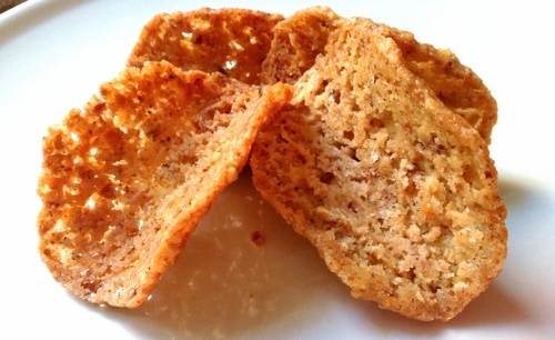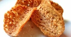- Вынь противень и пока печенья не остыли, положи их на деревянную скалку, тогда они будут похоже на чипсы;