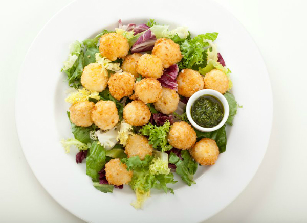 Как приготовить сырные шарики из моцареллы с зеленым салатом?