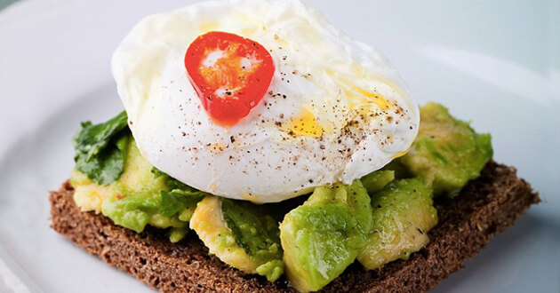 Мирослава Дума завтракает в своем новом кафе Buro Canteen. Рецепт здорового завтрака прост: безглютеновый хлеб, авокадо, яйцо и помидор черри.