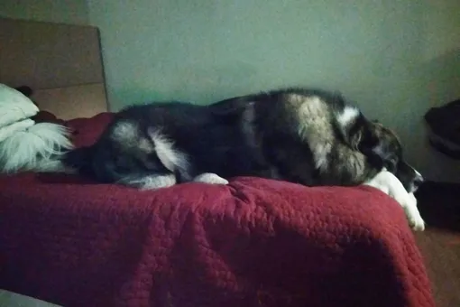Собака дома спит. Иногда выходит на кухню, чтобы посмотреть, достанется ли ей баночка с остатками сметаны или кусочек вкусного пирожка. Если вредные хозяева не поделились, грустно смотрит на холодильник и уходит спать дальше.