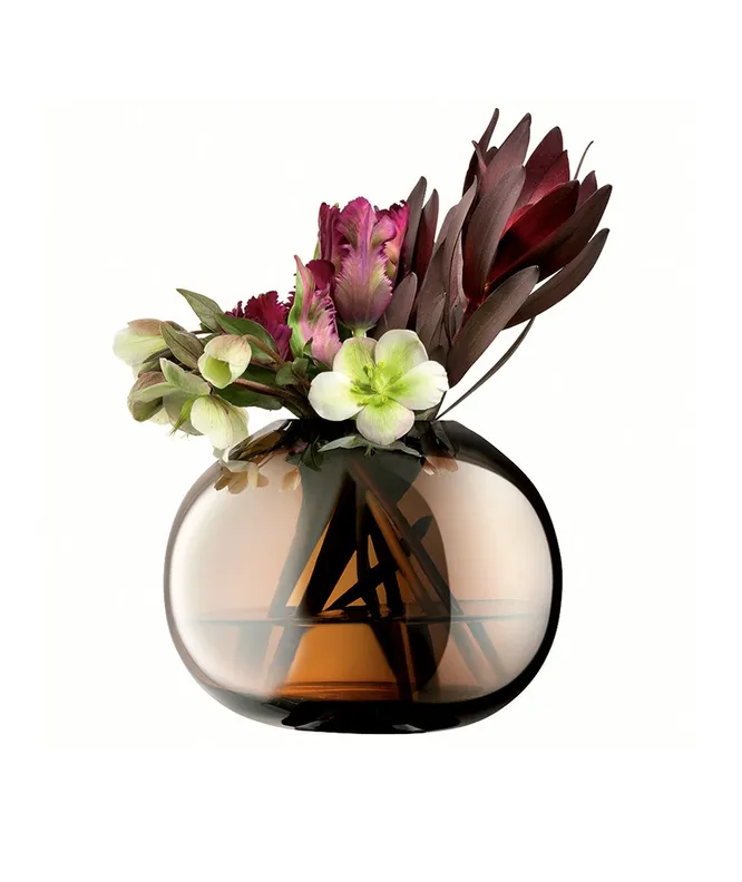 Изысканная ваза округлой формы добавит любому интерьеру нотки шика. Она интересно смотрится как соло, так и в паре с букетом цветов или сухоцветов.
