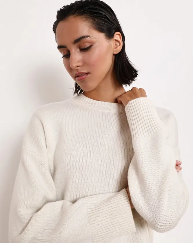 Кашемировый свитер премиального качества — отличный подарок для сестры любого возраста. Найти модель идеального кроя и цвета не так-то просто. В Москве сейчас два производителя могут предложить актуальные модели оверсайз с неровным краем из монгольского кашемира — Dasha Phi и 12storeez.