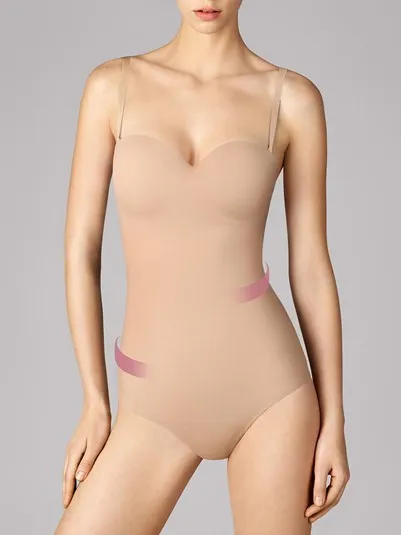 Утягивающее белье Wolford сделано из хлопка и эластана. Боди имеет плотные чашечки и съемные бретельки, изготовленные из эластичных волокон. В области талии есть вставки из тюля, благодаря чему обеспечивается максимальный уровень компрессии. Бесшовное утягивающее белье незаметно под одеждой, при этом оно качественно выполняет свою функцию. Боди скрывает живот, подчеркивает талию и ягодицы, а также приподнимает грудь, чтобы фигура выглядела женственнее и стройнее.