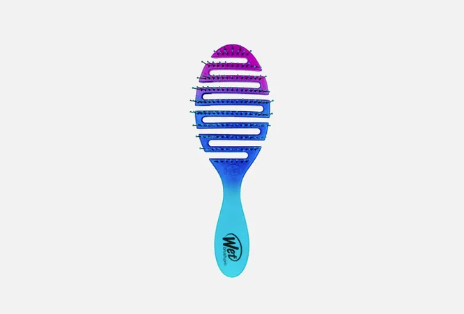 Выбрать хорошую расческу — дело непростое. Мы остановились на популярной модели Wet Brush. Щетинки этой расчески выполнены из высококачественного материала по уникальной системе подвижной гибкости IntelliFlex, упруго сгибаются и разгибаются до первоначальной формы. Это позволяет прочесать узелки любой сложности, не травмируя волосы и не выдирая их.