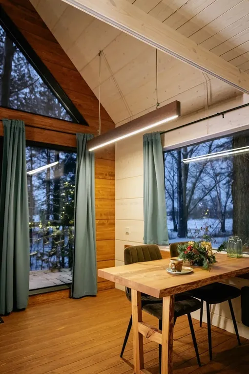 Вилла Плёс (Ивановская область, д. Шаляпино 1) — частная резиденция на берегу Волги для тех, кто ценит простор и функциональность. Всего двадцать сьютов площадью от 80 до 130 м² с большими окнами, террасами и мягкой природной водой в ванных комнатах. В пронизанных светом интерьерах — акцент на сочетании дерева и камня, а также ощущении уединения.