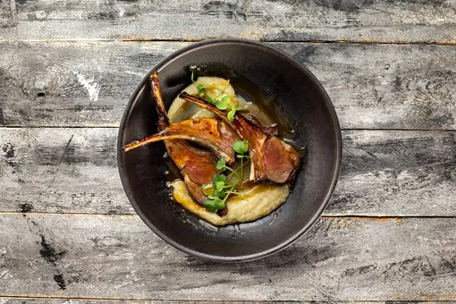 Корейка барашка с пюре из баклажанов и медовым соусом от Марка Стаценко