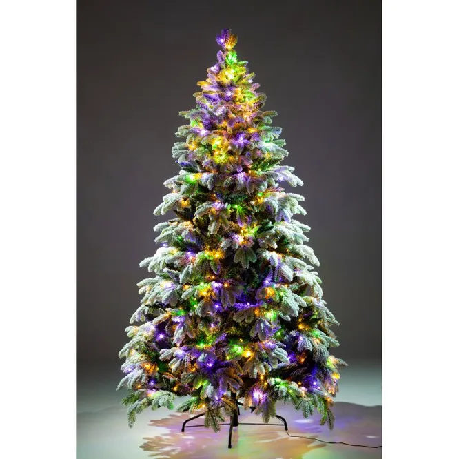 Ветви этой елки опутаны гирляндой, которая может работать в восьми разных режимах. Это красивое дерево сочетает традиционность и хайтек одновременно. Елка легко собирается, ветки надежно крепятся, а включенное дерево создает праздничную атмосферу.
