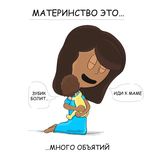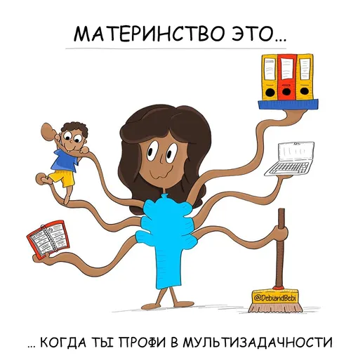 Когда ты работаешь мамой на фул-тайм, времени на себя почти не остается. Но сколько моментов, которые хочется запомнить! Молодая мама из Германии создала целую серию комиксов «Деби и Беби». Беби — это ее имя, а Деби зовут ее подругу из Пакистана. Она рисует просто уморительные комиксы о материнстве!