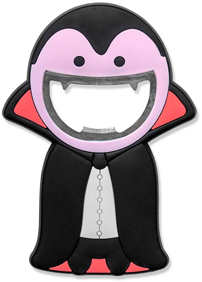 Компактных открывашек масса: несложно найти вещицы в виде сов, зайцев, елок, бочек, сказочных персонажей — чего и кого угодно. Мы же остановились на Дракуле, которому особенно идут металлические «клыки», легко открывающие бутылки.