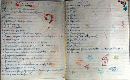 Анкета — это самое главное, это альфа и омега школьной жизни. Анкета была у каждой девочки. Чем толще, чем красочнее — тем лучше. Анкету должны были заполнить все одноклассники, поэтому мы старались придумать какие-нибудь необычные вопросы — такие, которые покажут нас с лучшей стороны. Но все равно самими главными были всего два вопроса: «Как тебя зовут?» и «Кто тебе нравится?». Помнишь, как замирало сердце, когда анкета оказывалась в руках у мальчика, в которого ты была влюблена? Ух!