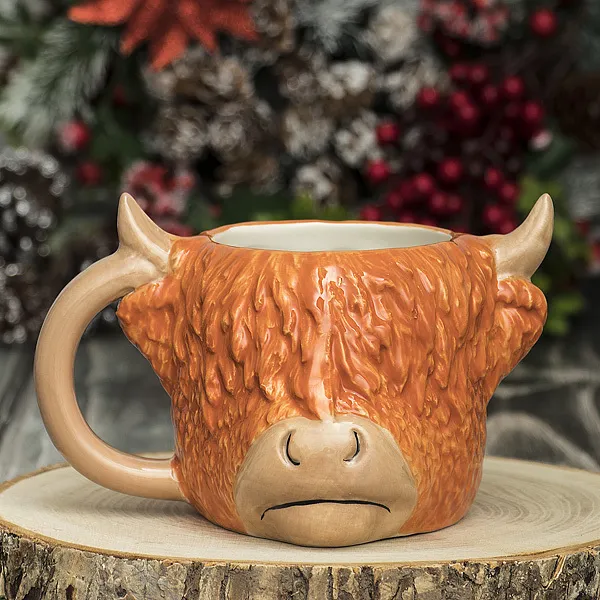Она сделана из керамики с ручной росписью в форме хозяина 2021 года — Быка с рогами, шерстью и минималистичными очертаниями морды. Плюс этой посуды – внушительный объем – 400 мл –и крепкая удобная ручка.