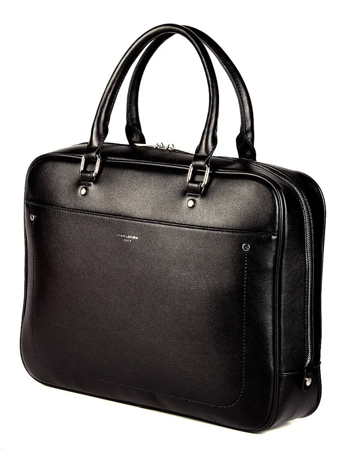 У этой сумки из искусственной кожи удобная ручка и много карманов: один на липучке, два внутренних отсека без застежки, два внешних на молнии. В аксессуар поместится ноутбук, пара папок с документами и нужные мелочи.