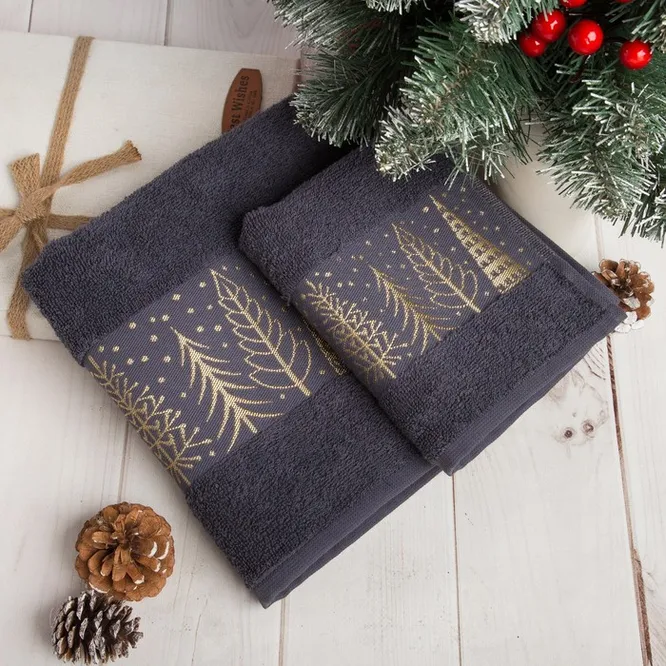 Новогодним, но не слишком броским, чтобы уместно выглядеть в ванной хоть летом, хоть зимой. Махровое полотенце сделано из мягкого и хорошо впитывающего влагу 100% хлопка дымчато-синего цвета. Единственное украшение — полоска с вышитыми по краю ткани золотистыми деревьями и хлопьями снега. Выбирая такой подарок папе на Новый год, советуем найти похожее светлое полотенце — для мамы.