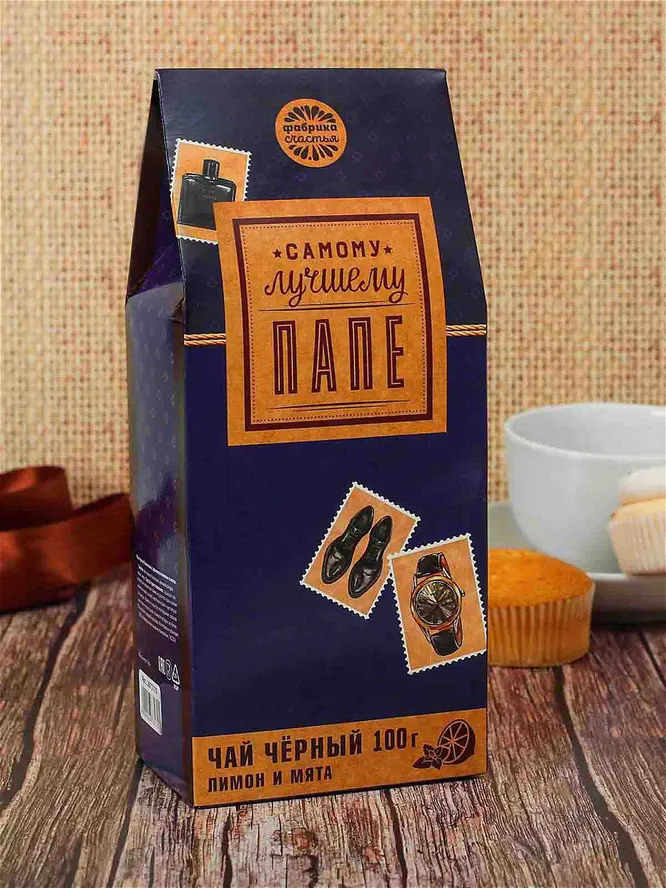 Символический сувенир, чтобы в Новый год еще раз напомнить папе, что он самый лучший. В синей упаковке с признанием: 100 граммов черного чая с мятой и лимоном для аромата. С обратной стороны пакета написано пожелание в стихах, называющее отца примером для всех и супергероем. Можно оставить его, а можно заменить на наклейку или фотографию с поздравлением, написанным лично тобой.