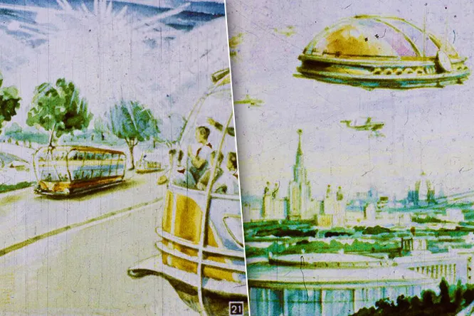 В 1960 году кандидат исторических наук В. Шевченко и инженер В. Струкова создали диафильм, где показали, каким могло бы быть далекое будущее глазами фантастов.