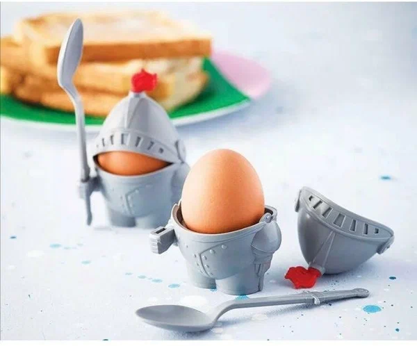 В этом возрасте дети уже достаточно самостоятельны, но все же продолжают осваивать основные навыки, в том числе поведения за столом. Оригинальные подставки помогут аккуратно съесть отварное яйцо — и немного поиграть в рыцарский турнир!.