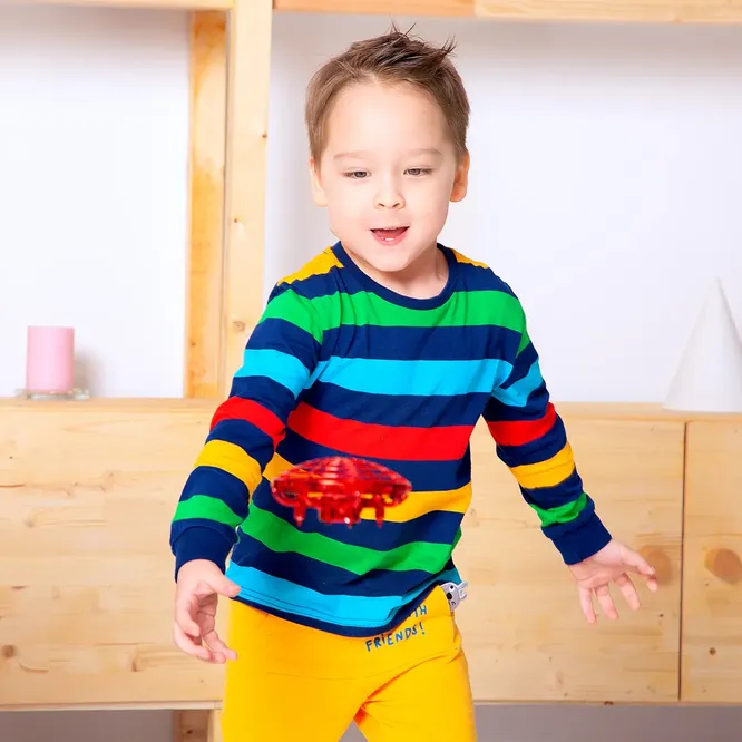 Необычная игрушка станет отличным вариантом подарка мальчику на Новый год, поскольку она сочетает в себе несколько функций. Это шар со светом, волчок, тарелка НЛО и детский дрон. Интерактивное устройство подходит для веселых игр дома и на улице. Управлять им нужно движением открытой ладони, а препятствия спиннер легко обходит сам и меняет направление. Дрон способствует развитию мелкой моторики рук, улучшает координацию движений и тренирует внимание и реакцию.