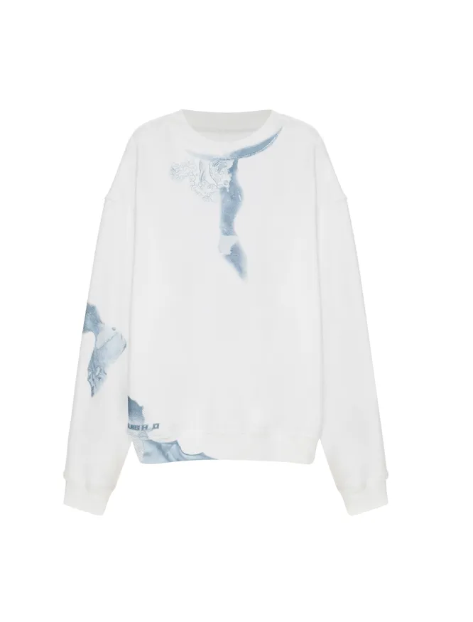 Белый свитшот с ненавязчивым акварельным принтом — идеальный выбор на весну. Она сможет носить его с джинсами, джоггерами, свободными брюками или надевать поверх платьев.