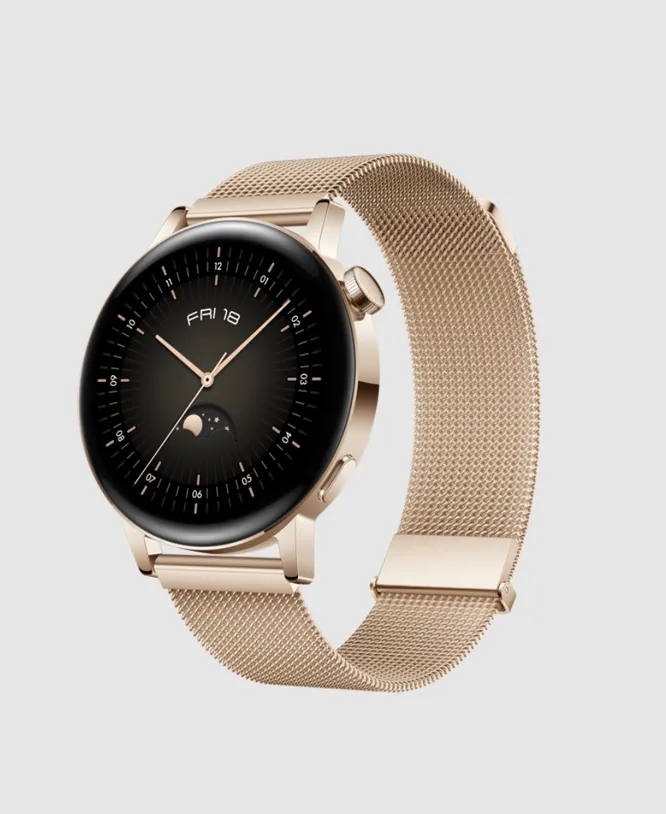 В новом исполнении смарт-часы Huawei Watch GT 3 получили изящный золотистый ремешок с миланским плетением. Гаджет способен работать без подзарядки до 7 дней. Часы позволяют слушать музыку, совершать звонки через Bluetooth, получать уведомления, а также считывать показатели здоровья. Кроме того, в них встроено более 100 тренировочных режимов, включая 18 профессиональных и 12 тренировок на открытом воздухе.