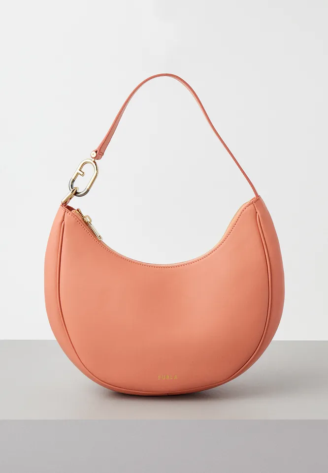 Новая сумка никогда не лишняя в гардеробе любой девушки. Наш фаворит — модель персикового цвета в форме полумесяца (тренд последних сезонов!). Она идеально дополнит любой аутфит, будь то женственное платье или строгий брючный костюм.