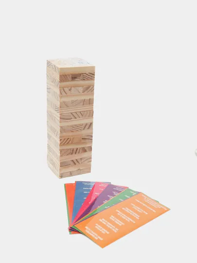 Эта версия – для взрослых и компаний, в которых друг друга не стесняются. Стартуем по-классике: вытягиваем из башни брусок. Но его не откладываем, а читаем и выполняем написанное задание, например посоревноваться с сидящим рядом партнером, кто громче издаст стон наслаждения, или рассмешить друга любым доступным тебе способом.