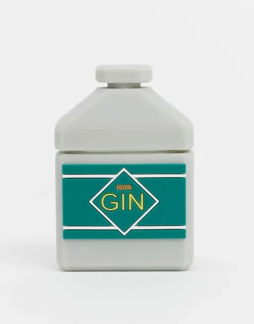 Аксессуар совместим с AirPods и другими моделями, копирующими дизайн и параметры «яблочного» гаджета. Мягкий кейс защитит футляр с беспроводными наушниками от царапин и повреждений. А еще сделает девайс ярким и непохожим на другие: чехол изготовлен в форме серой бутылки джина с пробкой и этикеткой.