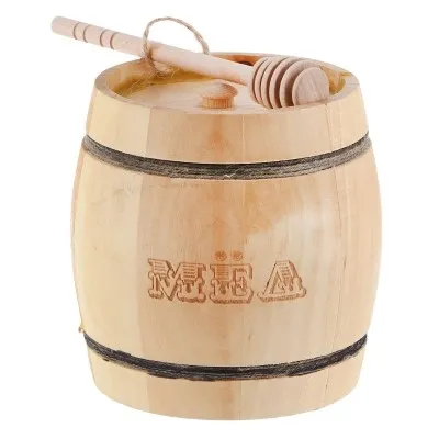 Солидный запас липового меда (650 граммов) в почти настоящей бочке: деревянной, с имитацией обручей и специальной ложкой. Сладость в таком виде – веселый подарок-сувенир на Новый год. И полезный тоже: продукт можно добавлять зимой в чай или глинтвейн, а еще приготовить с ним не один десерт. Например, рождественское печенье, батончики гранолы на завтрак или классический медовик.
