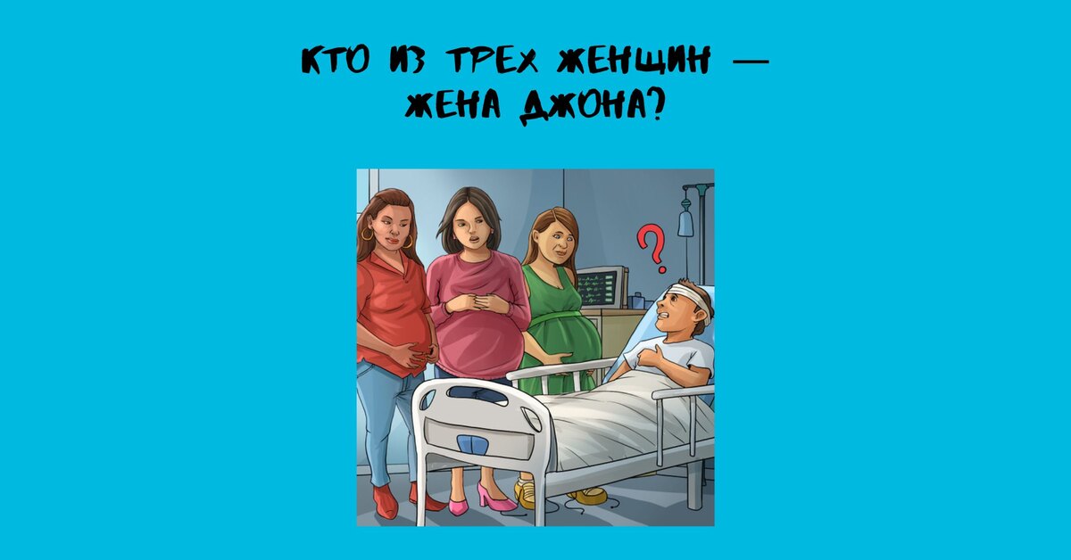 У Джона после сотрясения мозга развилась амнезия. Он помнит, что его жена должна вот-вот родить, но забыл, как она выглядит. К нему в палату пришли три женщины, и каждая утверждает, что она состоит в браке с пациентом. Кто из них говорит правду?